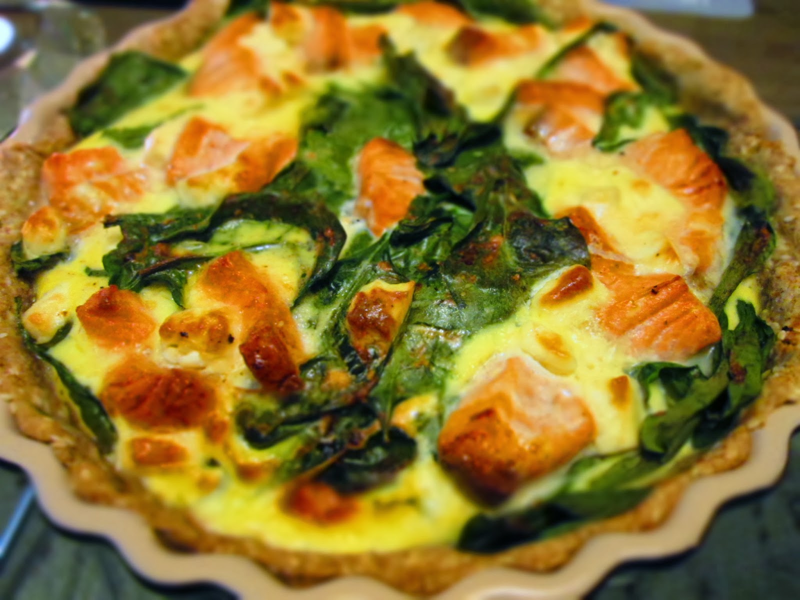 5) Put fyldet i den forbagte tærtedej og bag den i ca. 40 minutter ved 200 grader, eller indtil æggemassen er fast