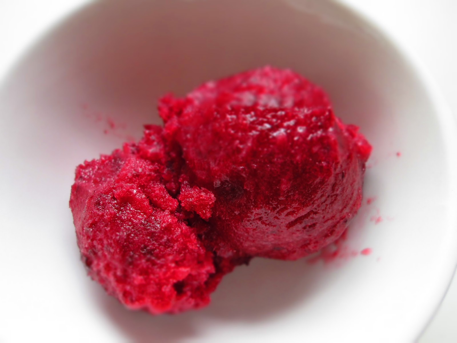 Jeg har i lang tid drømt om at lave en kirsebæris! Først tænkte jeg at det skulle være en flødeis med stykker af kirsebær i, men når nu sommeren står for døren synes jeg at en sorbet var mere passende. Og det er jeg glad for at jeg valgte - for det her er den mest smagfulde og lækre is jeg har lavet til dato! Isen smager skønt af søde kirsebær, har en uimodståelig flot farve og er lækker og cremet som en rigtigt sorbet skal være. Prøv den, og bedøm selv!