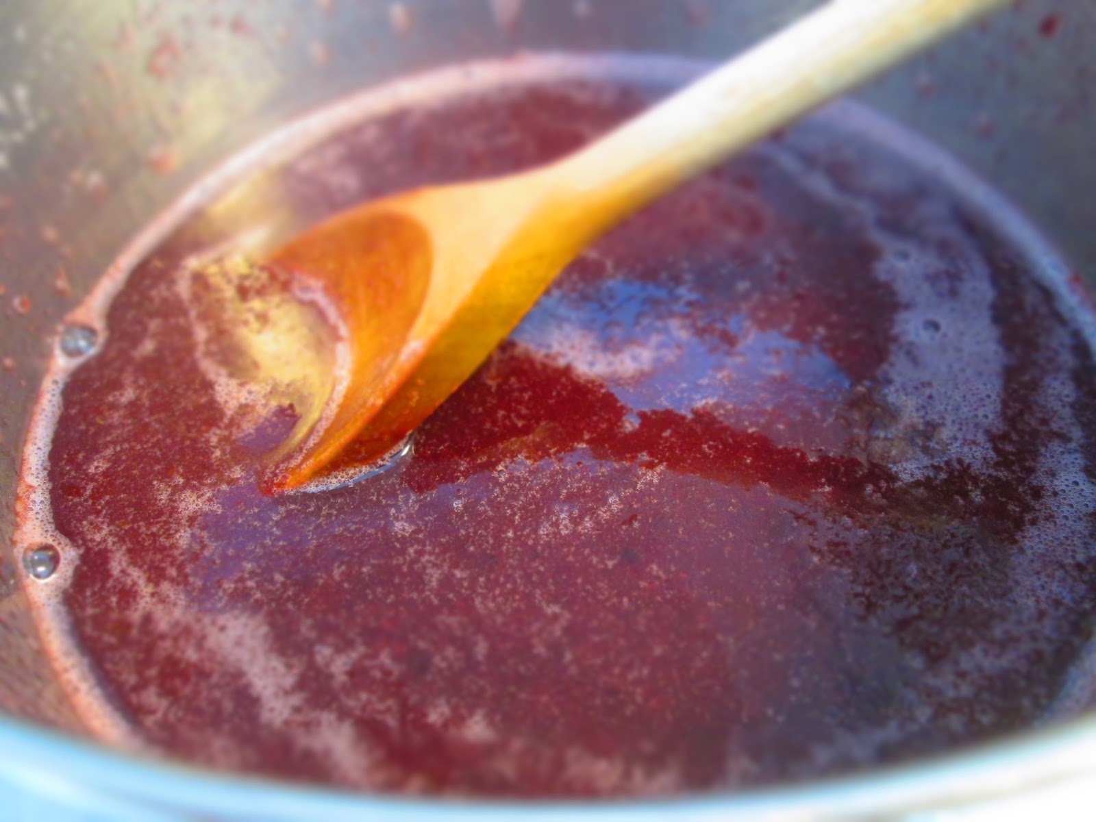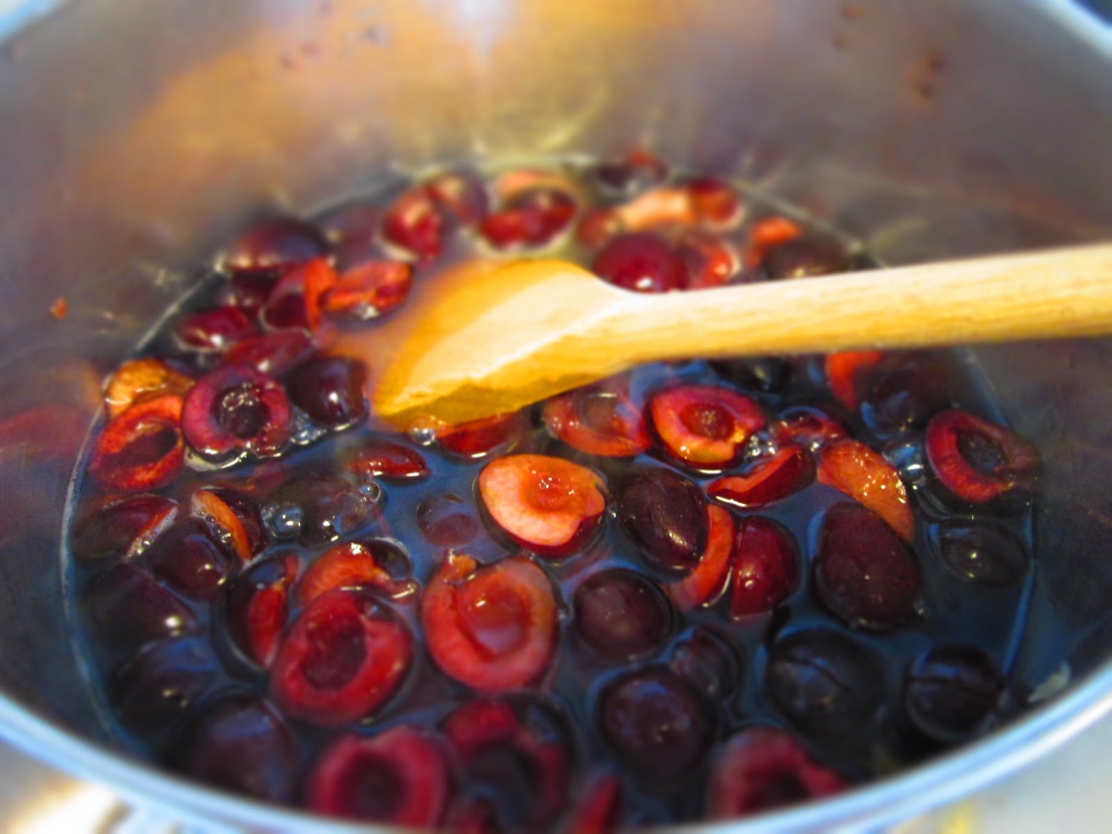 3) Tilsær kirsebærrene når sukkersiruppen koger og lad det simre i 10 minutter