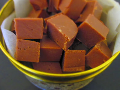 8) Hæld fudgen over i en bagepapir beklædt form. Stil fudgen i køkeskabet i minimun 4 timer, eller bare til dagen efter og skær den i fine firkanter med en skarp kniv