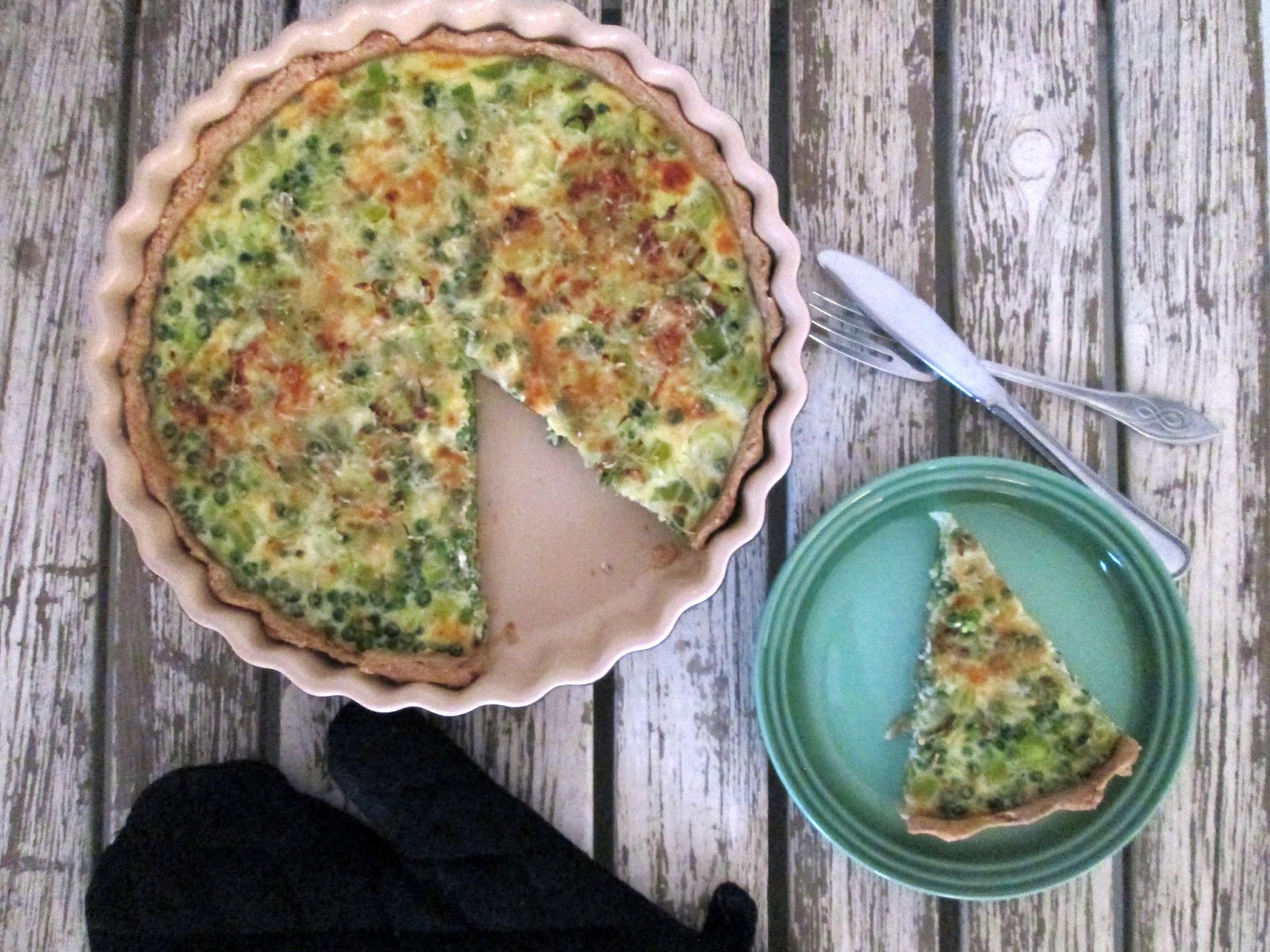 Hvis du vil peppe tærten her lidt op vil jeg foreslå at stege noget kylling af på panden i små firkanter og putte det i, eller gå discount-vejen og købe kalkunbacon eller kyllingetern og putte i..