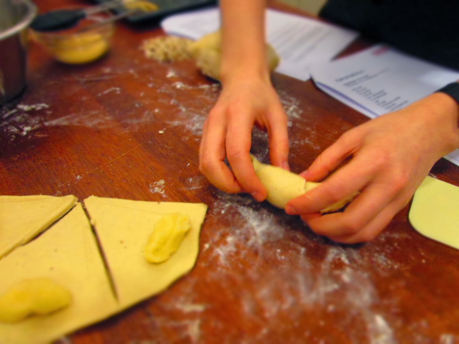 4) Rul dejen ud med en kagerulle og skær den i trekanter