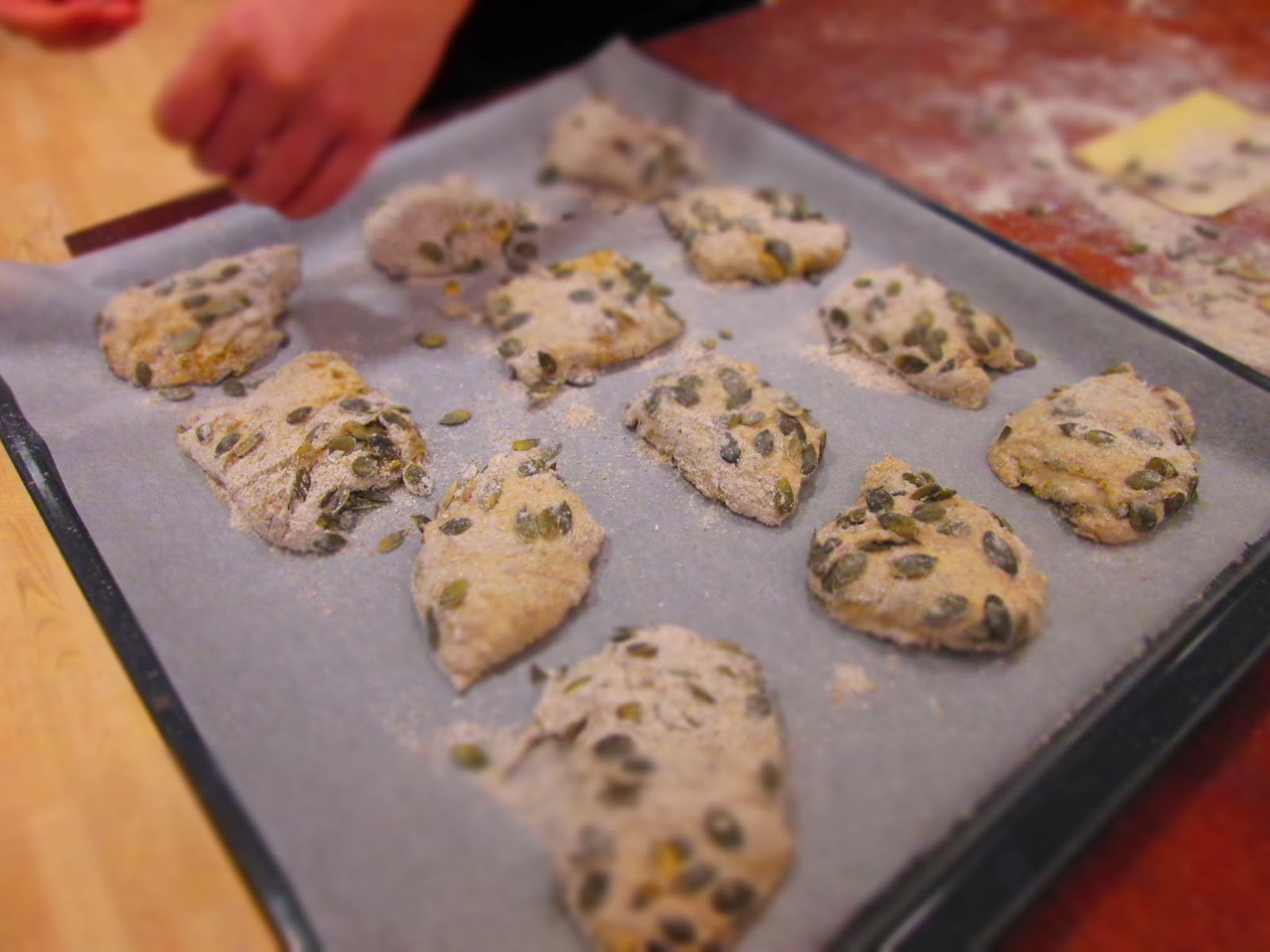 - Lidt kerner til at rulle bollerne i (græskar, hørfrø, solsikke, sesam mm)