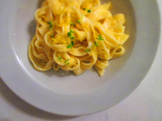 Mmmmm, jeg elsker pasta! Og det her er helt klart en ny favorit! Citronen gør pastaen frisk og let syrlig og komplimenterer derfor madlavningsfløden helt perfekt, så man ikke føler at det er fed mad. Jeg serverede denne pasta til et stykke stegt torsk, men jeg skal også prøve at lave det som "hovedret" en dag med store stykker af laks i og lidt forårsløg måske :)
