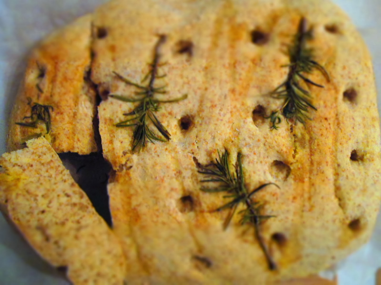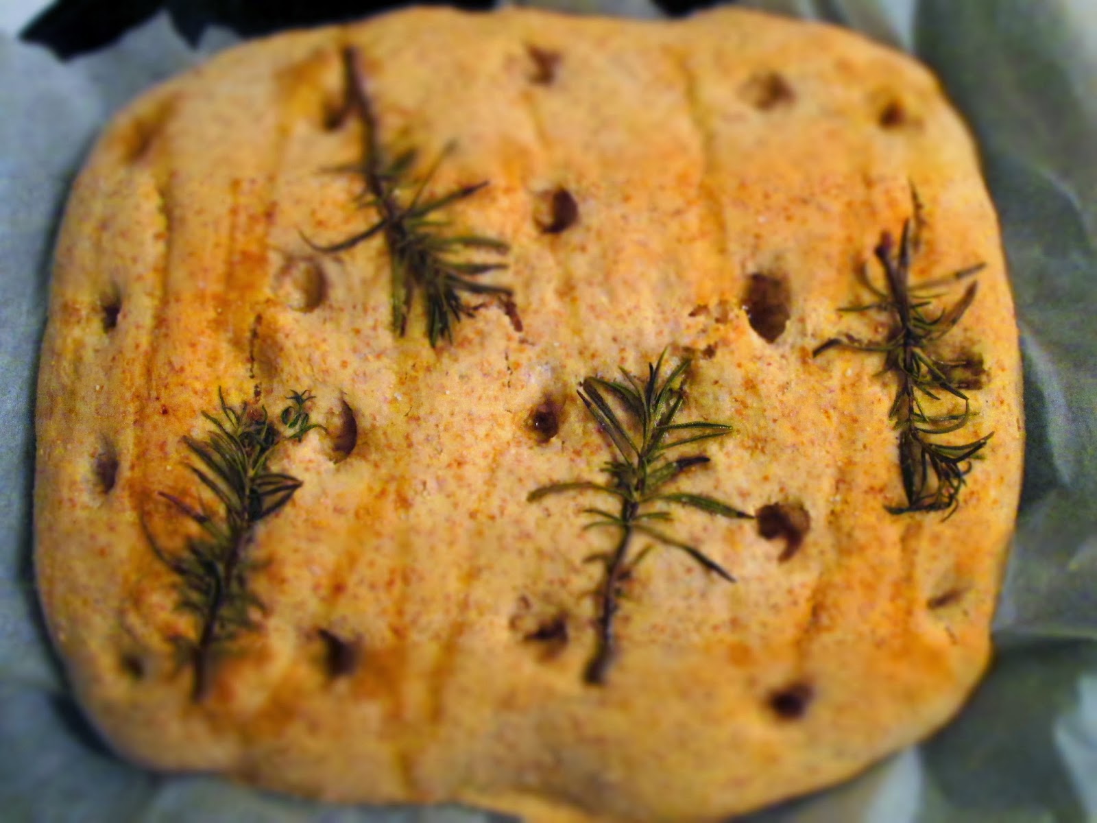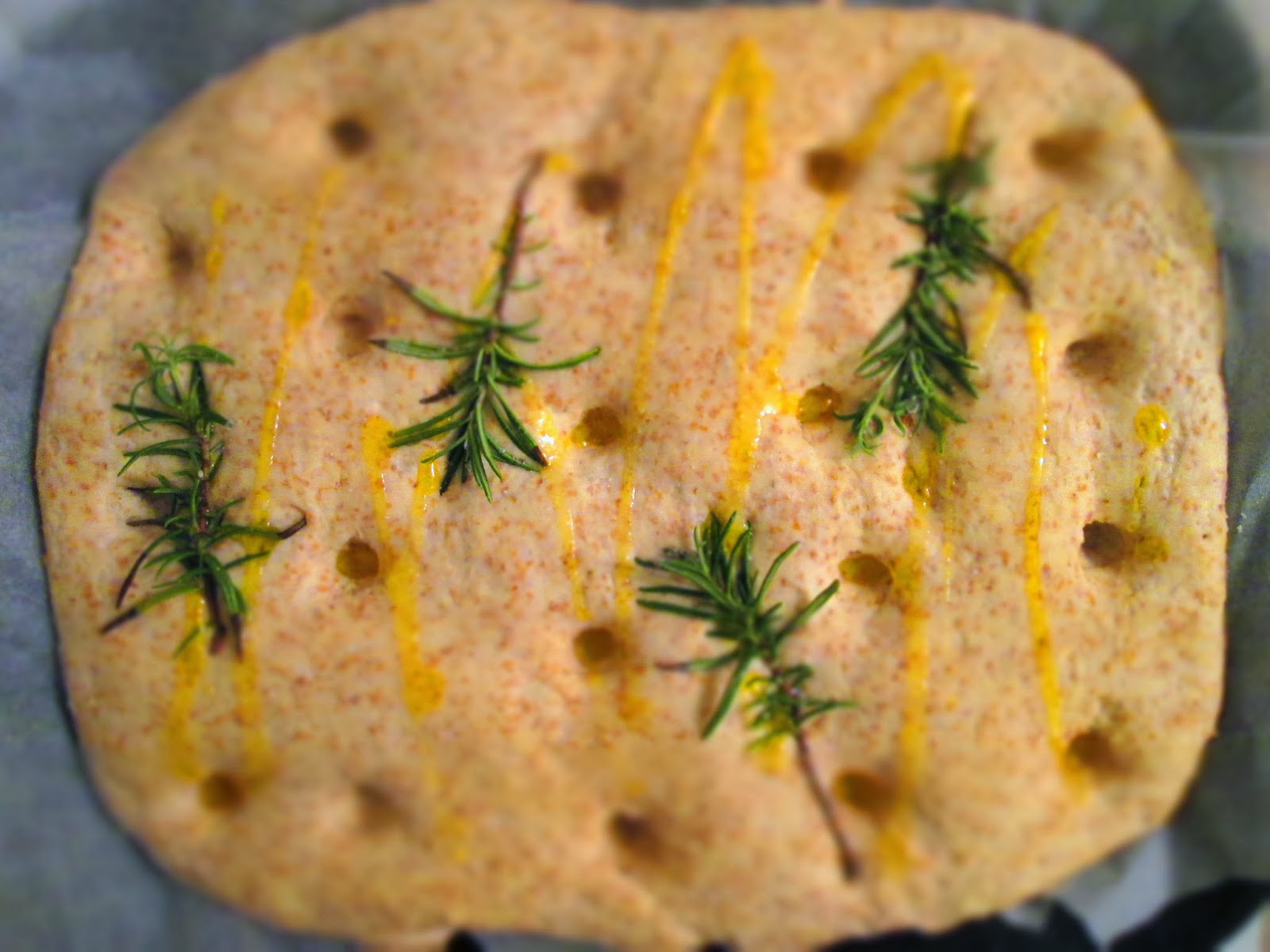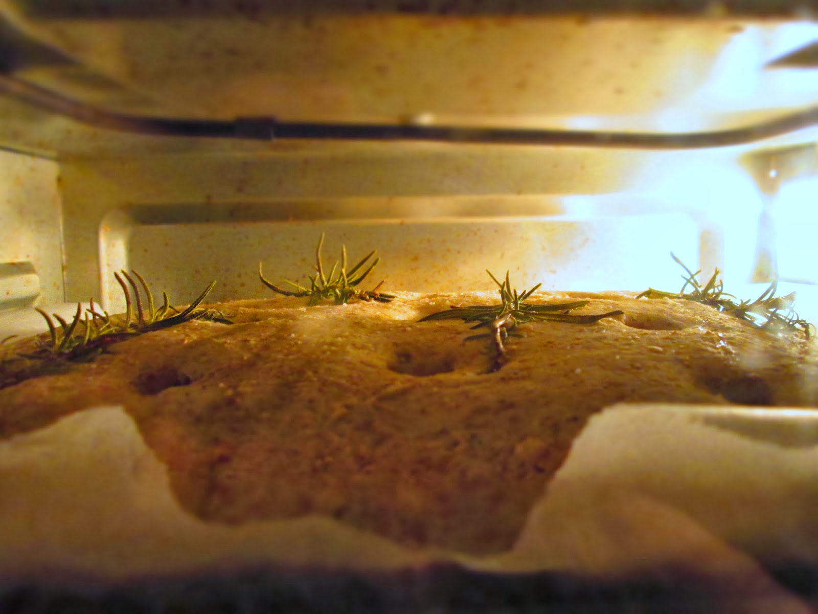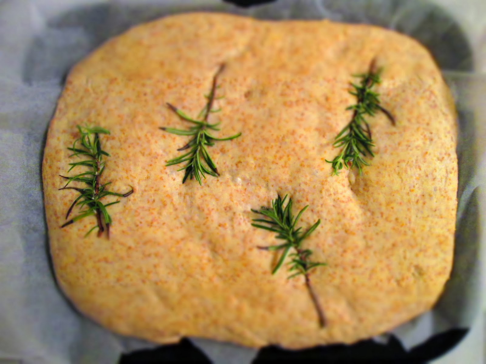 5) Vask rosmarinstilkene og tryk dem ned i dejen