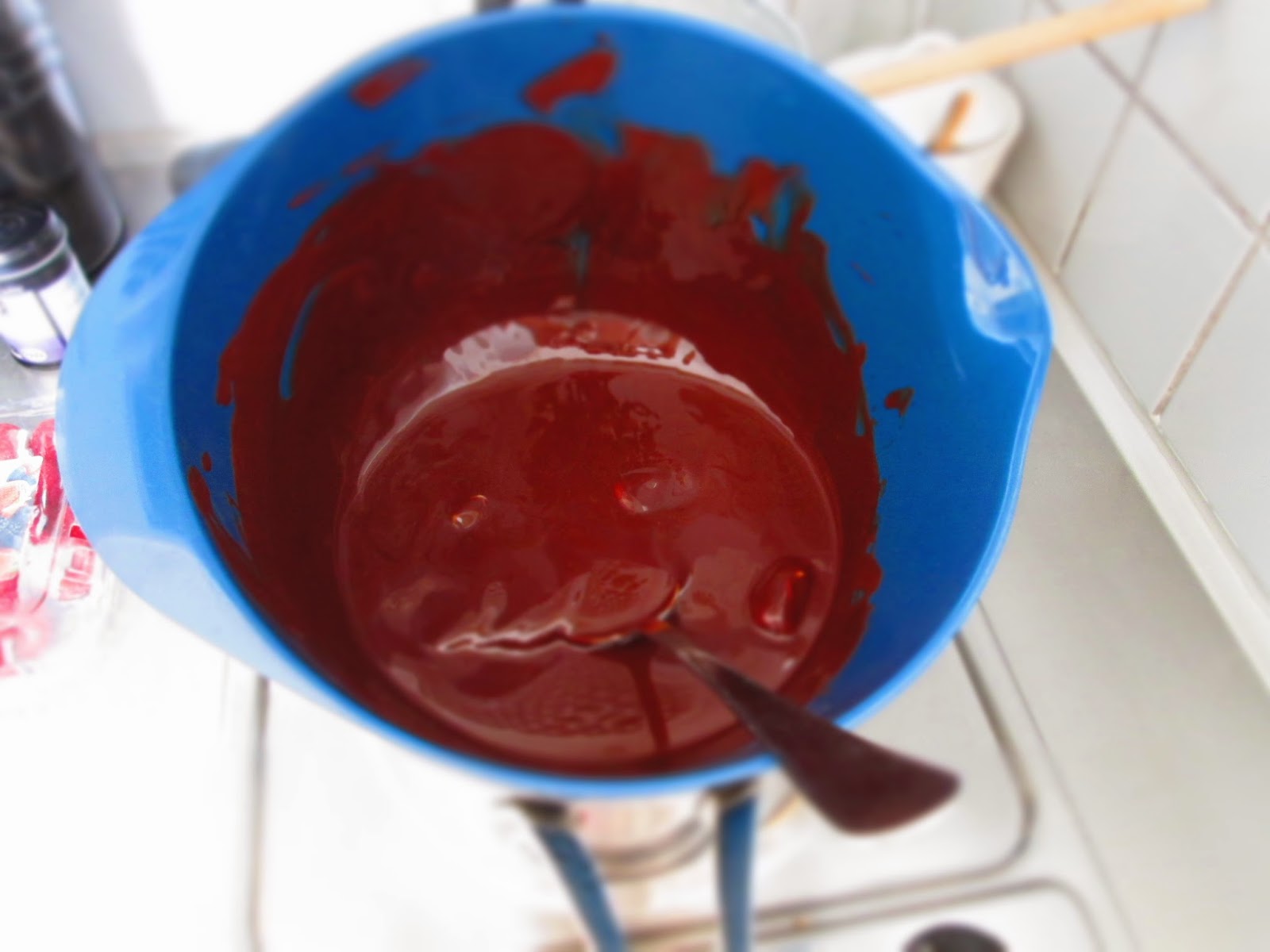 1) Smelt chokolade og smør i en skål over vandbad