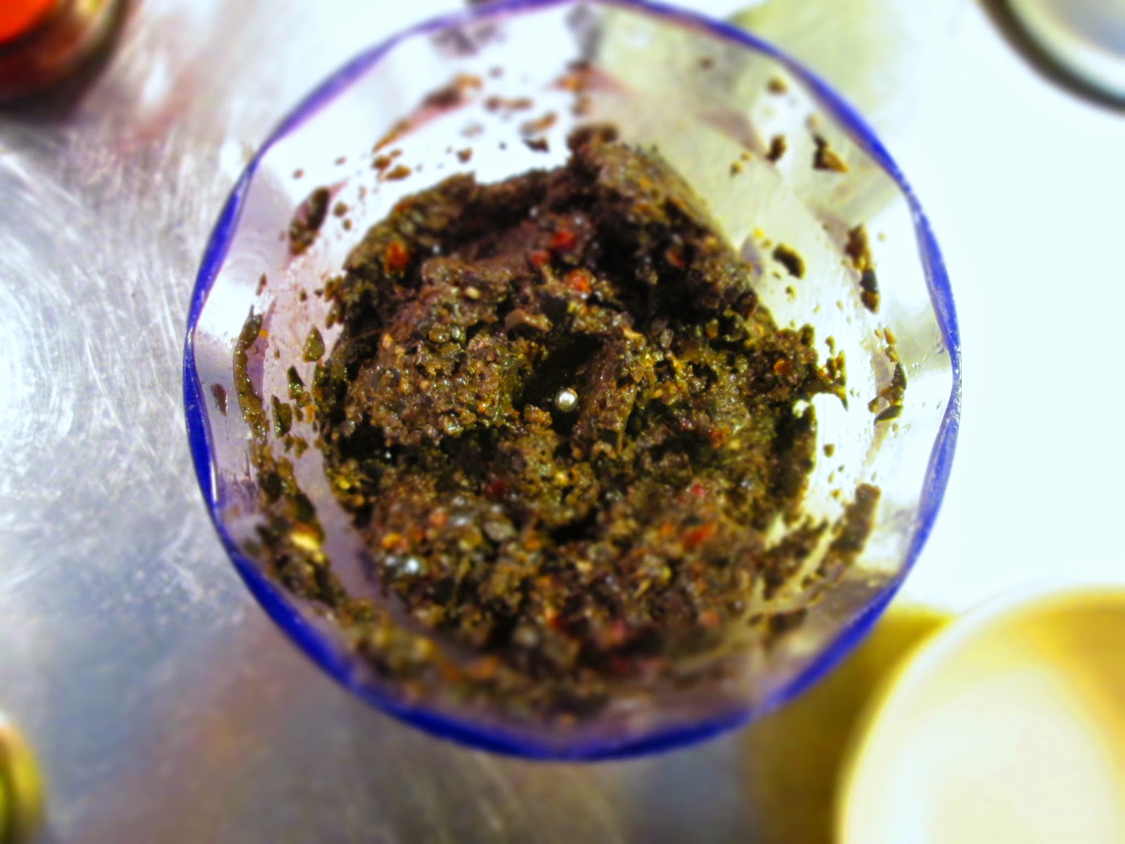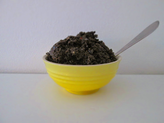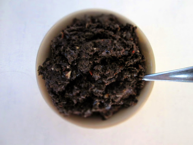 1) Hæld vandet fra olivenerne og put dem i en minihakker