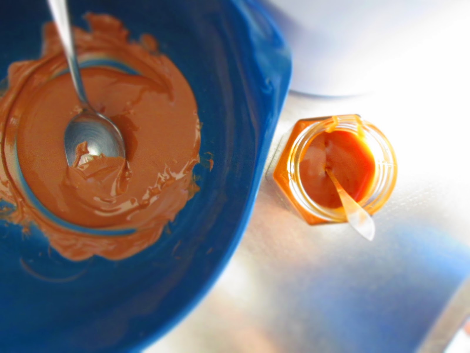 8) Når isen er færdig hældes den i en beholder og der hældes evt. lidt mere karamelsauce udover. Sæt isen i fryseren.