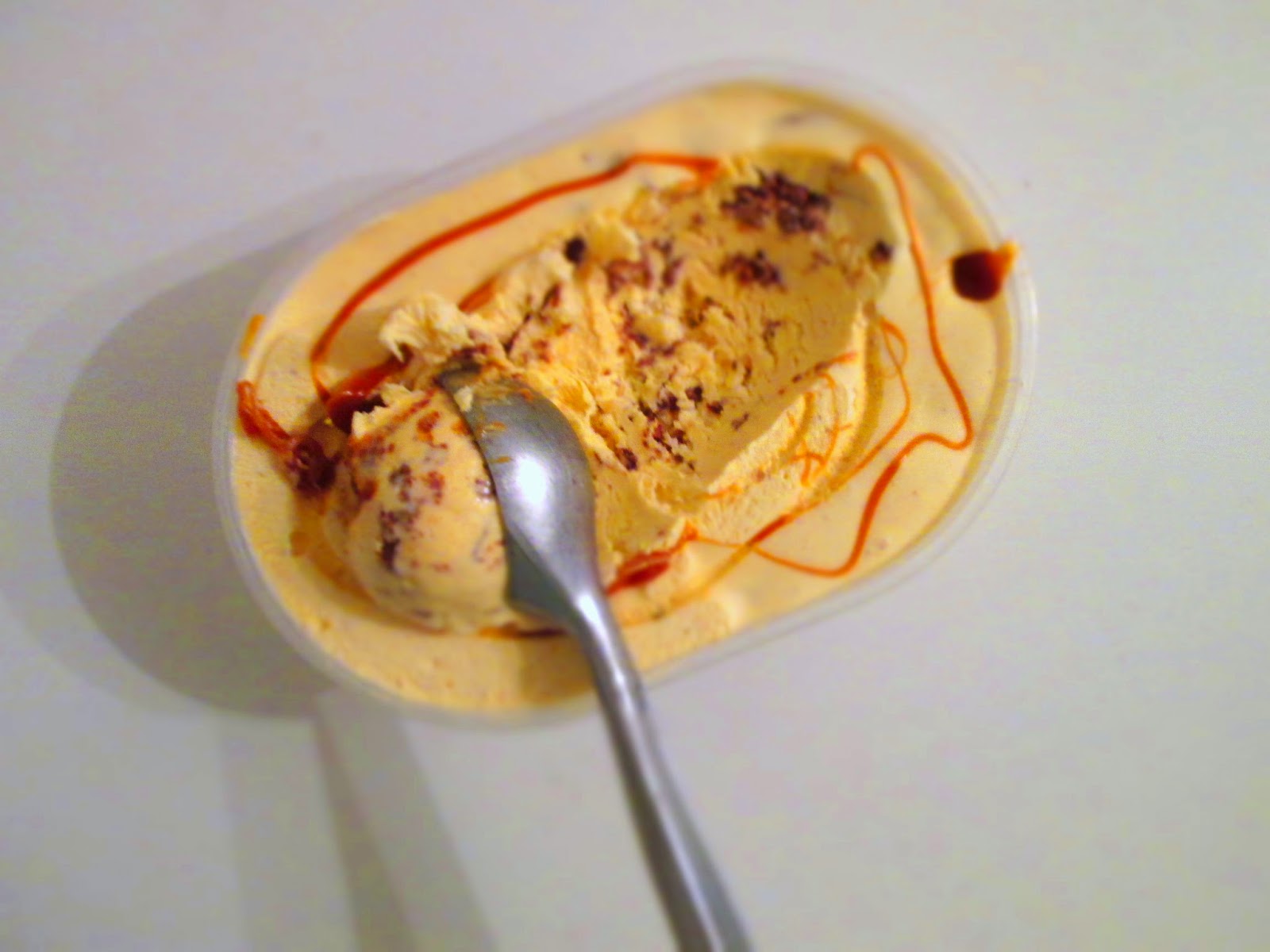 4) Tilsæt 4 tsk. saltkaramel sauce og rør det sammen i iscremen