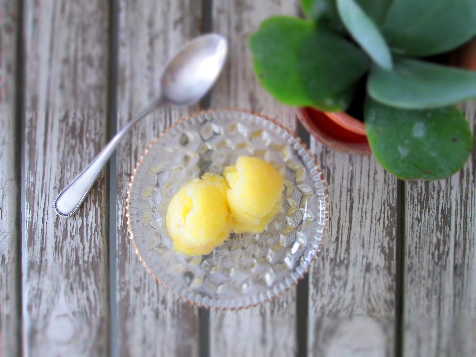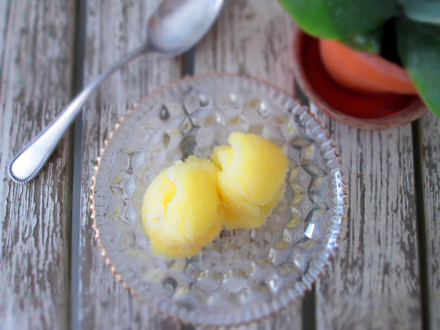 Den tog jeg selvfølgelig, for det havde jeg aldrig set eller hørt om før - og nøj hvor det smagte godt! Super frisk, lækker og sød :) Derfor blev jeg jo nødt til selv at gøre kunsten efter og det er der så kommet denne sorbet ud af.. Og igen må jeg bare sige: WAUW! Den er så god, helt fantastisk ananassmag som jeg btw også tror ville passe perfekt hvis man lavede dem som ispinde :)