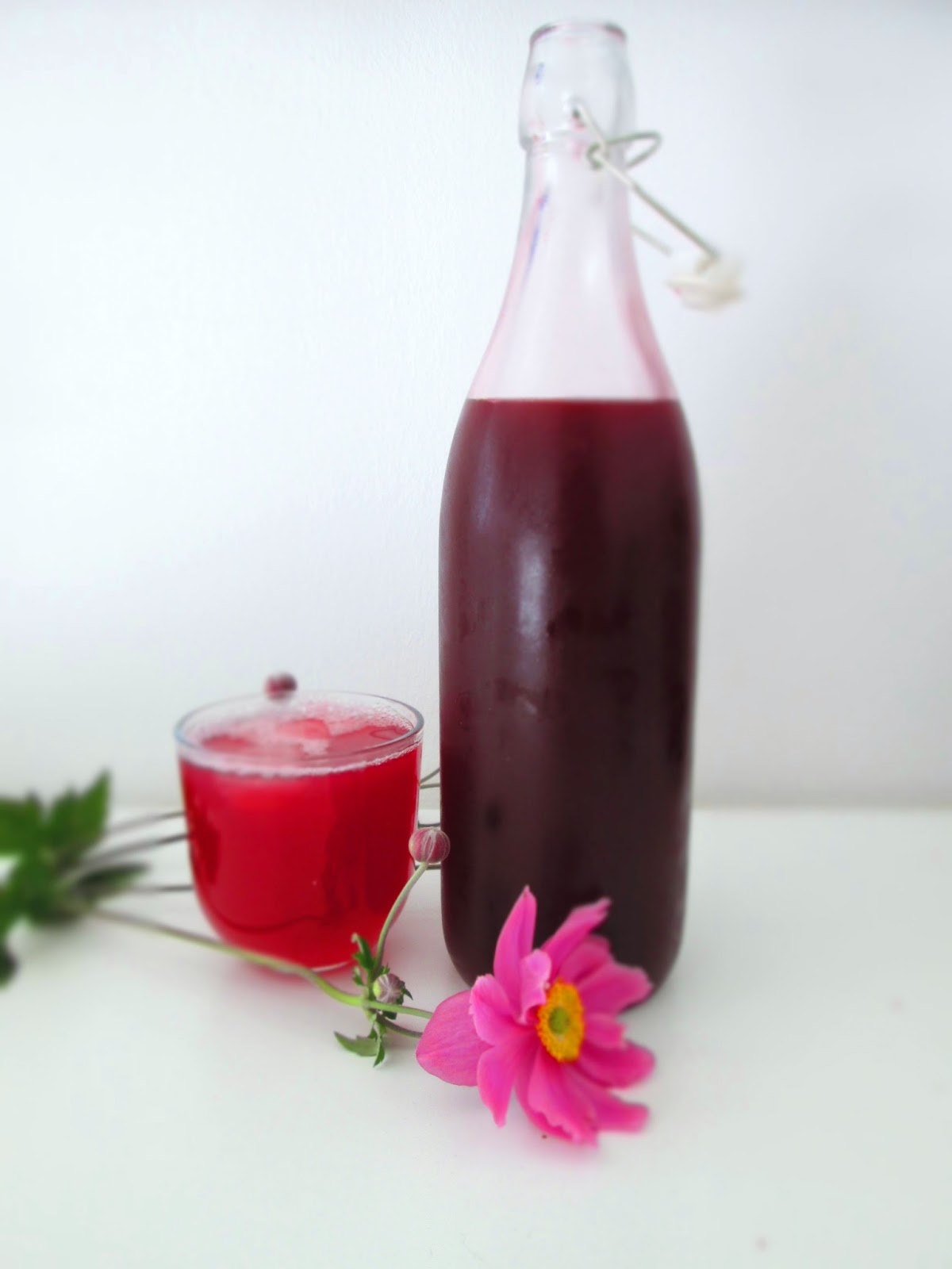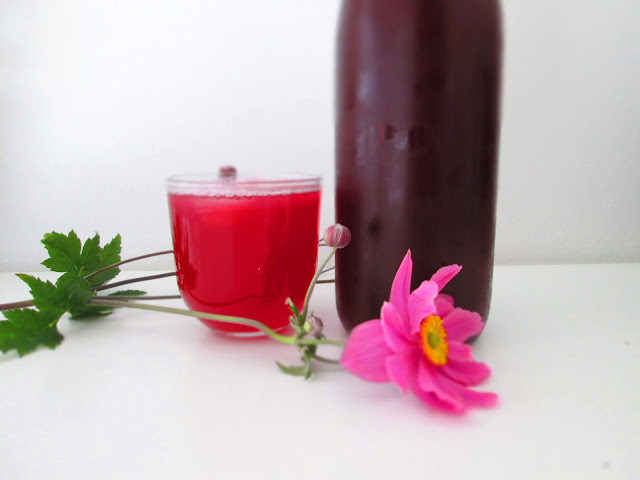 Desværre kan bærrene ikke holde sig så længe, når man først har plukket dem, så da jeg stod herhjemme med to store bakker fyldt med ribs og solbær, og de var ved at blive lidt overmodne, tænkte jeg, at det da kunne være lækkert at lave til saft. And so it went, ribs og solbær blev til den flotteste og super skønne "ribena" saft :)