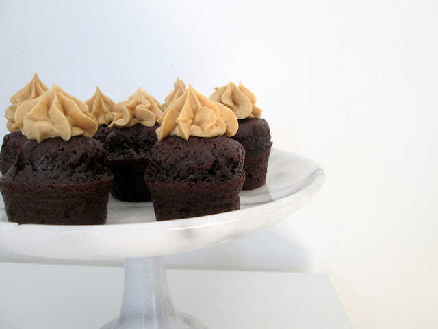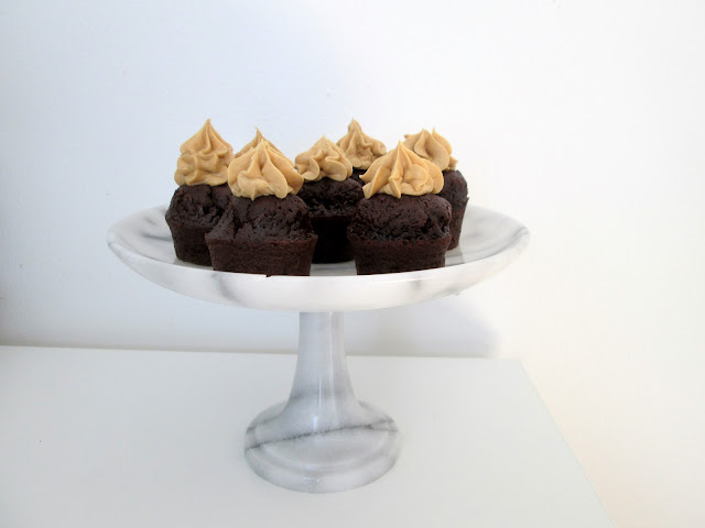 Jeg havde længe gået og overvejet hvilken slags muffin jeg skulle lave - og ikke mindst hvilken frosting der skulle på! Tankerne havde været omkring alt fra vanilje til bær, men da jeg så så et glas peanutbutter i køleskabet tænkte jeg at dét måtte være sagen!