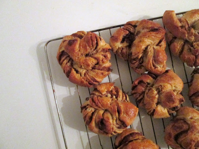 Så mandag eftermiddag efter studiet gik jeg i gang med at bage. Jeg har længe kigget misundeligt på de såkaldte "kanelsnurre", jeg synes de er så flotte, men jeg har altid tænkt at det måtte da være virkeligt besværligt at lave dem så pæne..