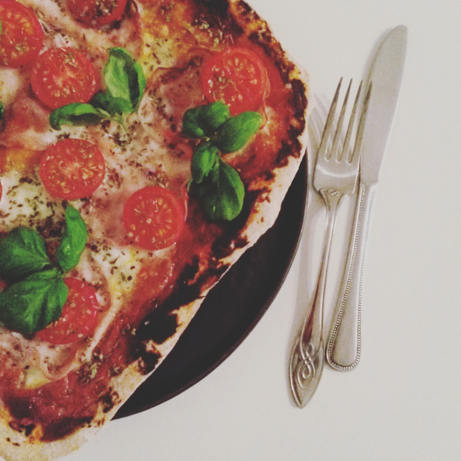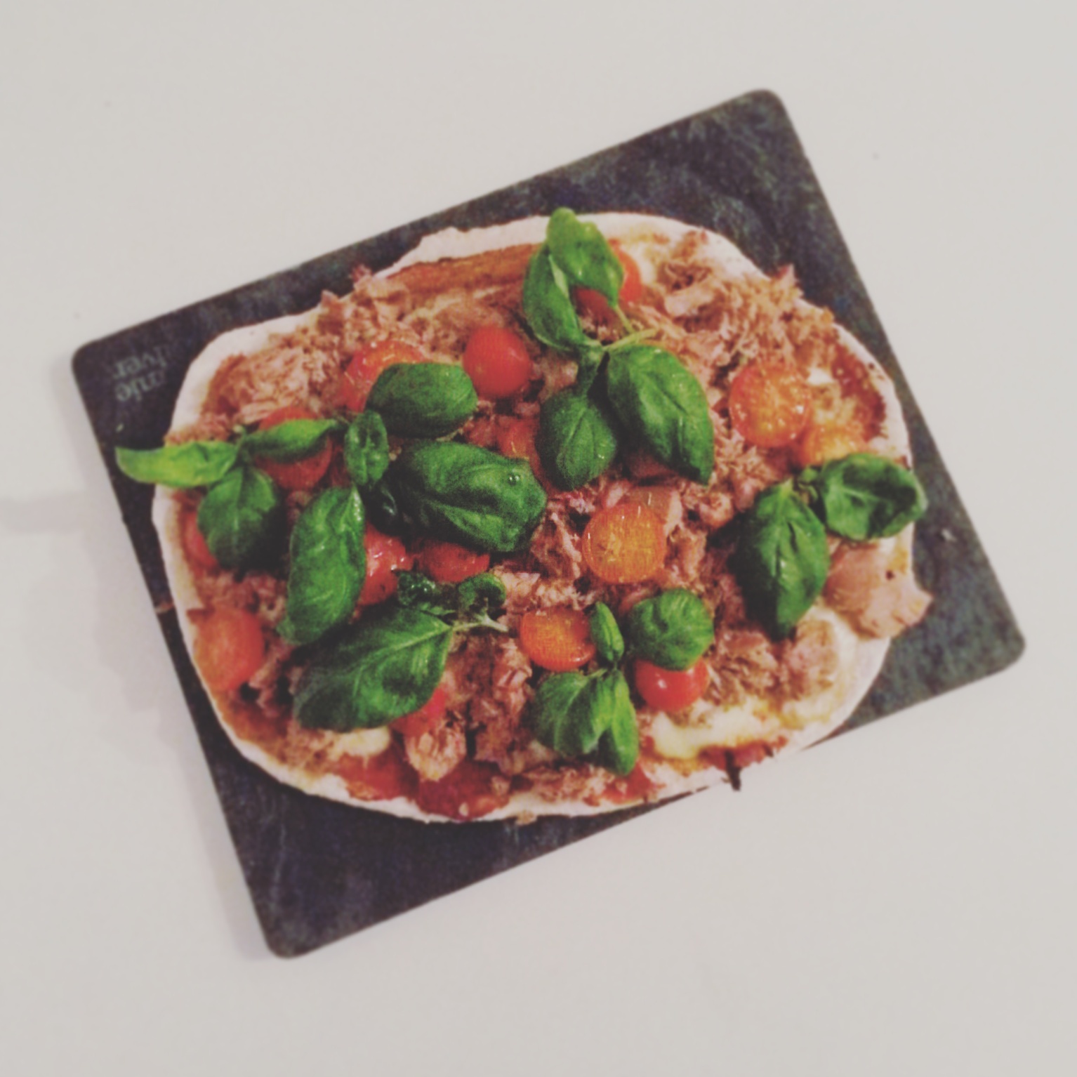 | Fuldkornspizza med tomat, mozzerella og tun |