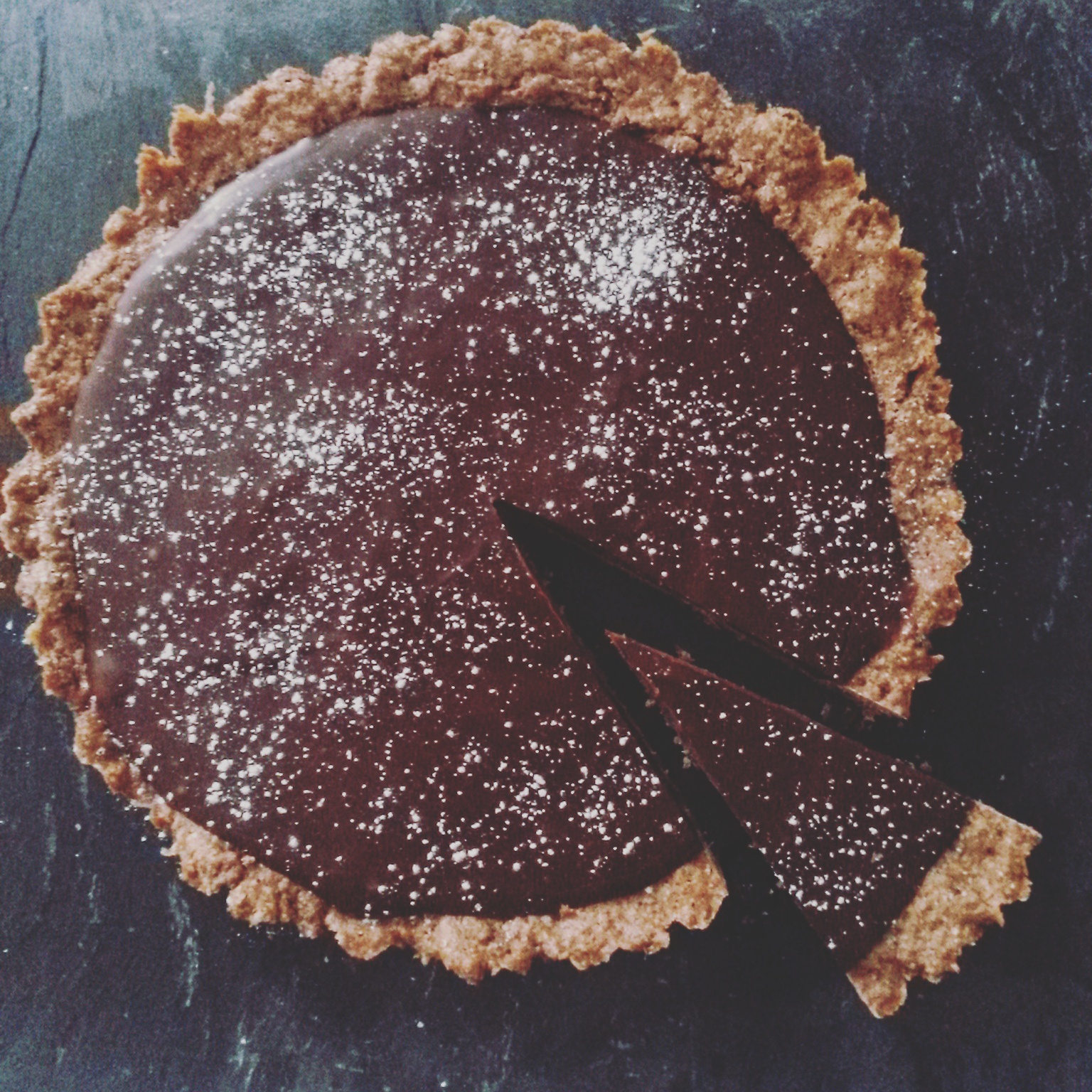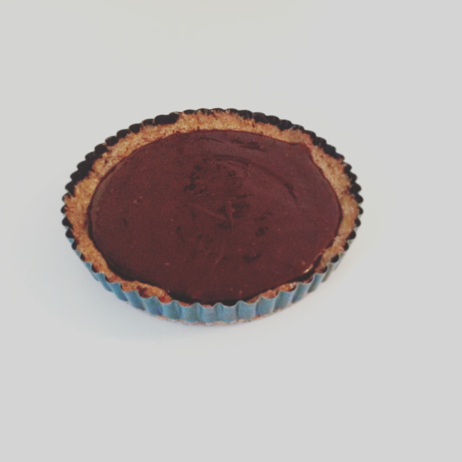 | Tærte nu med chokoladeganache på toppen |